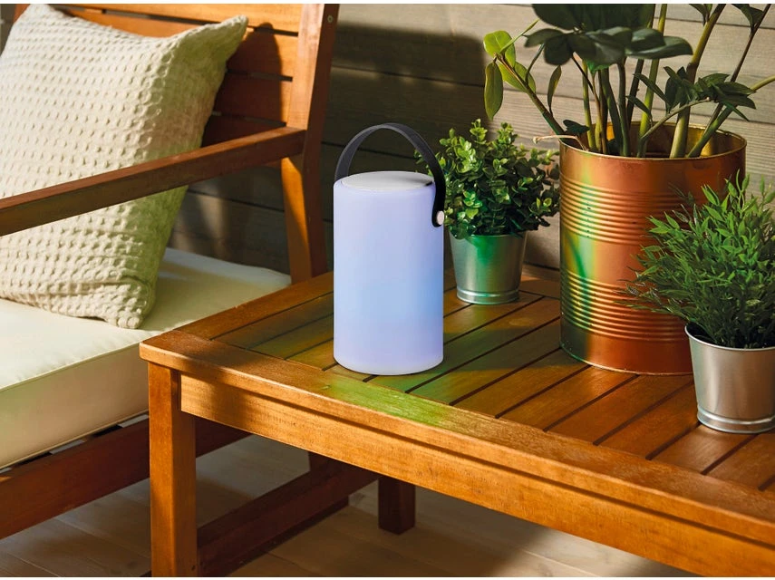 Schick, modern, vielseitig: Die Outdoor-Tischleuchte Bermuda ist ein toller Blickfang im Freiluft-Wohnzimmer und ein wahres Multitalent. So sorgt die transportable weiße Kunststoffleuchte für abwechslungsreiches und atmosphärisches Licht. Dank Farbwechsler erstrahlt sie in bunten Nuancen, ist stufenlos dimmbar und die Farbtemperatur lässt sich verändern – bequem mit der mitgelieferten Fernbedenung. Dazu liefert Bermuda auch die passende Musik für gemütliche Sommerabende oder fröhliche Partys mit dem Bluetooth-Lautsprecher. Zusätzlich besitzt das spritzwassergeschützte Modell von Reality einen USB-Anschluss mit Ladefunktion und eignet sich mit dem langlebigen, fest installierten SMD-LED und enthaltenen Akku mit etwa acht Stunden Leuchtdauer ideal für draußen.