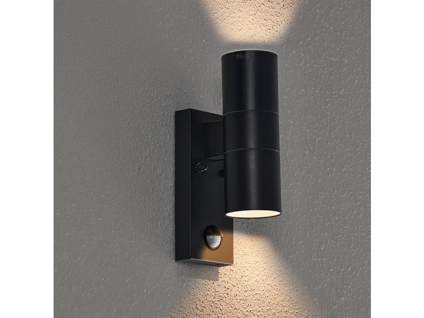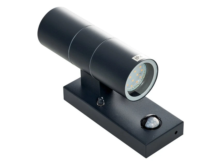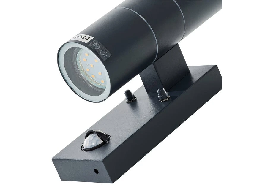 Optimales Licht und hilfreiche Sicherheitsfunktionen kombiniert die formschöne Außenwandleuchte Riga 5. Sie besteht aus einem schlanken zylindrischen Gehäuse aus anthrazitfarbenem verzinkten Stahl und Glaselementen. Zwei installierte LEDs strahlen warmweißes Licht nach oben und unten. Ein integrierter Dämmerungssensor schaltet sich bei einsetzender Dunkelheit oder bei Tageslicht automatisch ein oder aus. Zusätzlich sorgt ein Bewegungsmelder bei der spritzwassergeschützten Outdoor-Leuchte für Helligkeit und Sicherheit rund ums Haus. Eine Leuchte mit tollem Mehrwert!