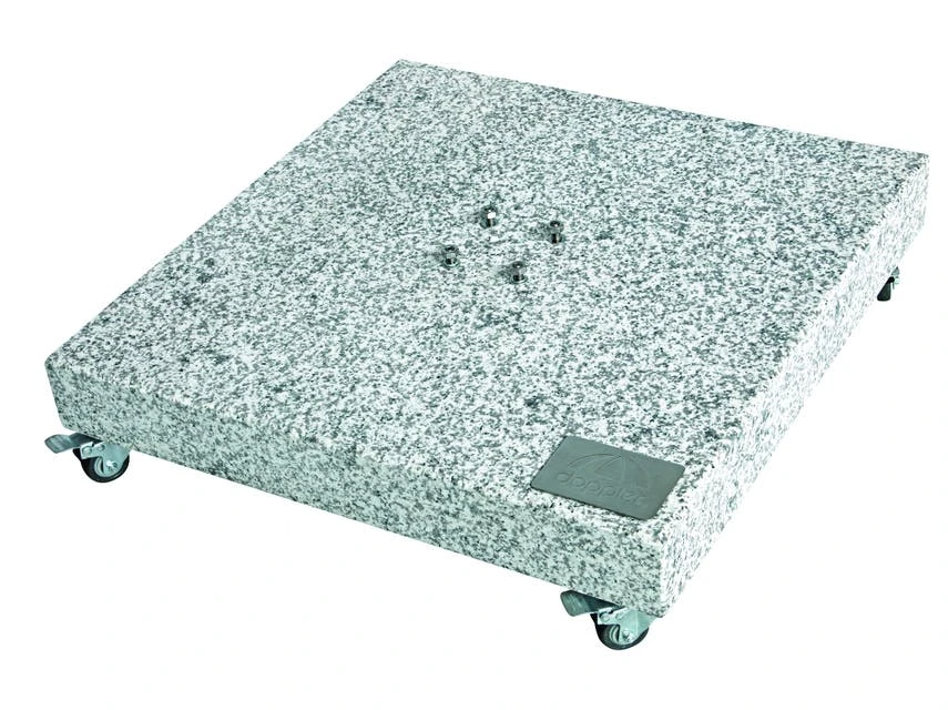 Die Granitplatte Expert mit einem Gewicht von 140 kg ist die ideale Ergänzung zu Ihrem Sonnenschirm und praktisch mit 4 Rollen beweglich. Zwei davon sind zu fixieren um auch einen sicheren Stand zu gewährleisten. So wird der Schirm perfekt beschwert und hält jedem Wetter stand.