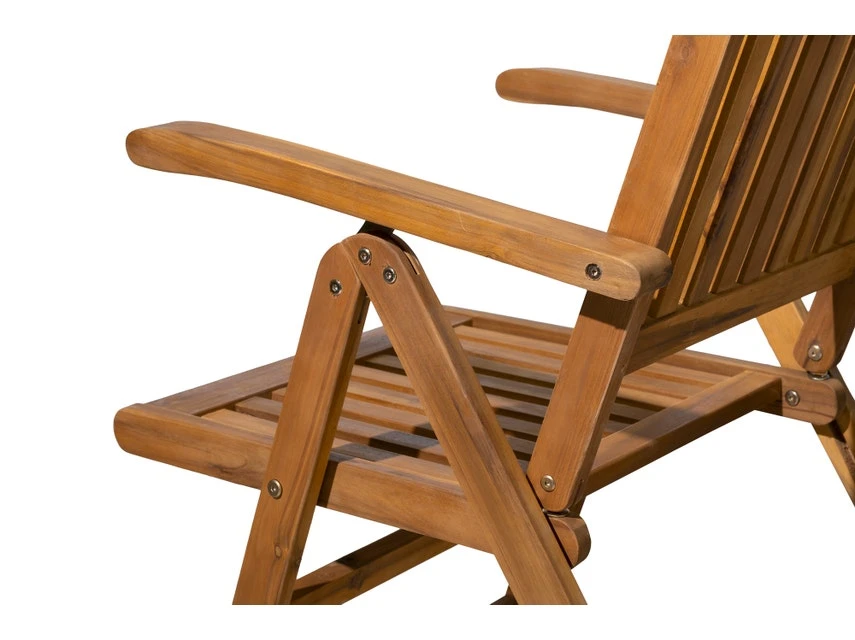 Der Gartenstuhl mit Armlehnen ist aus Akazien-Holz gefertigt mit Oberfläche geölt und somit ist dieses Modell robust und stabil. Zusätzlich kann die Rückenlehne 5-fach verstellt werden und der Gartenstuhl ist zudem platzsparend zusammenklappbar.