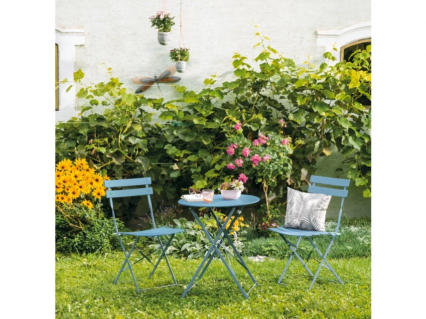 Klein aber fein lautet das Motto beim 3-teilige Balkonmöbel-Set Amalfi, welches in pastelligem Hellblau Akzente setzt und für einen freundlichen Farbtupfer in Ihrem Outdoorbereich sorgt. Tisch (60 x 70 cm, Tischunterkante Höhe 69 cm) und Sessel (41 x 79 x 49 cm, Sitzhöhe 43 cm) lassen sich zusammenklappen und können so optimal und platzsparend verstaut werden. Genießen Sie die tolle Atmosphäre auf Ihrem Balkon bei einem gutem Buch oder einer Tasse Kaffee und lassen Sie die Seele baumeln.