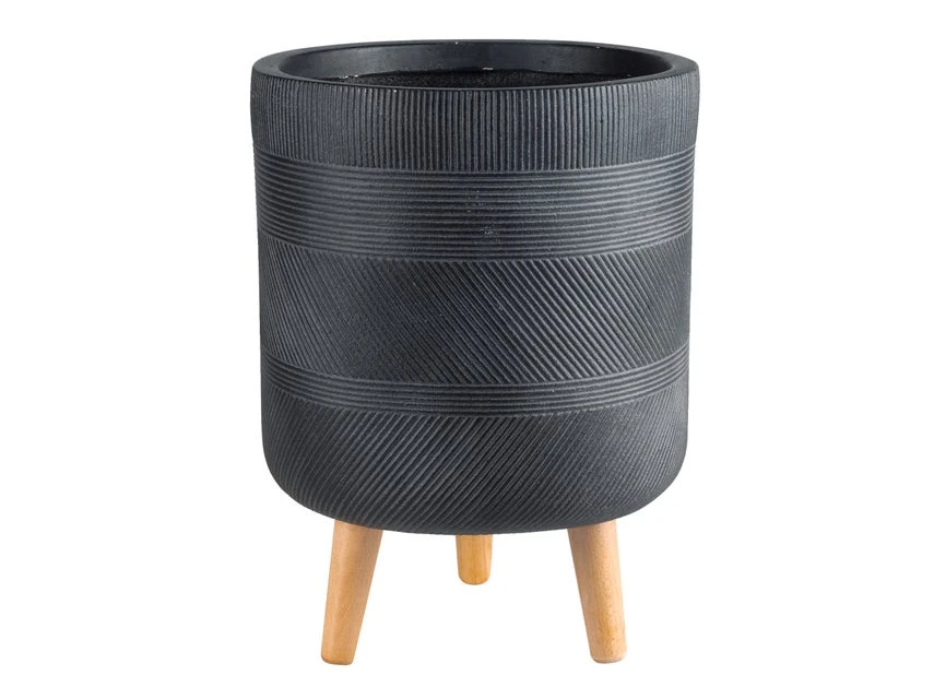 Stylisch und modern – der Blumentopf Sabine von Jardini bringt Chic in den Garten. Seine minimalistische Form erhält durch das trendige Antrazitgrau, raffinierte Linienmuster und beschichtete Holzfüße im Skandi-Stil eine elegante, wertige Optik. Damit Ihre Grünpflanzen draußen optimal gedeihen, hat der Topf aus Ton mit 30 cm Durchmesser einen Verschluss und ein Abflussloch gegen Staunässe. Erhältlich ist er in den Leiner-Filialen.
