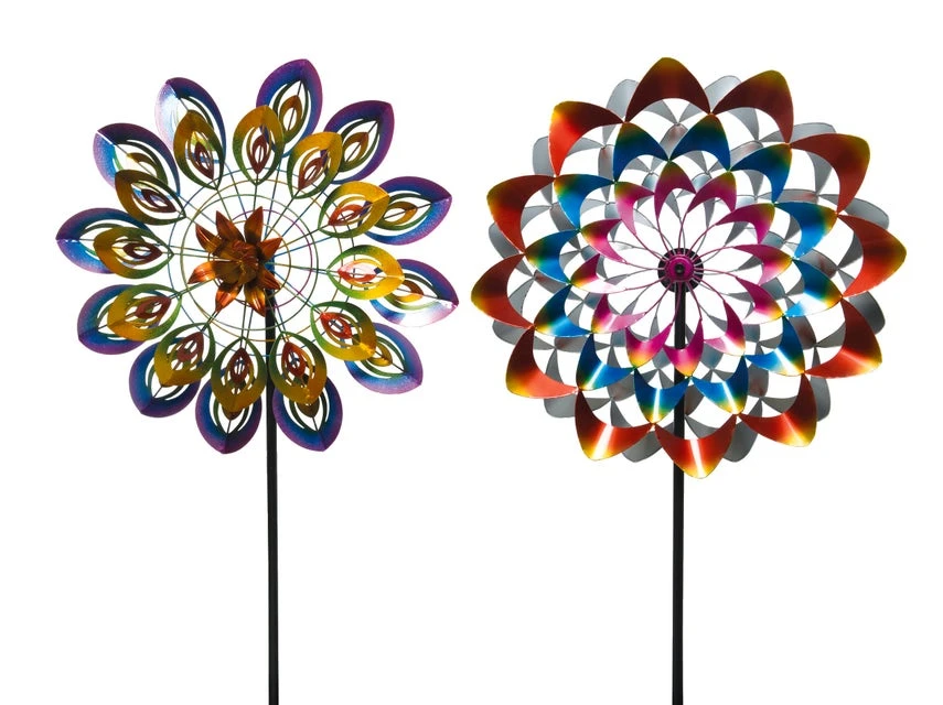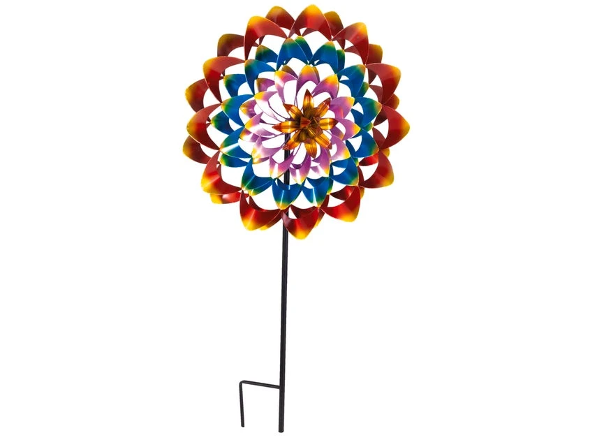Farbenprächtig und fröhlich wirkt jedes dieser schön auffälligen Windräder aus Eisen von Jardini. Ihre kunterbunten Facetten in verschiedenen Größen auf einem Stab mit 183 cm Gesamthöhe sind nicht zu übersehen und setzen einen tollen Akzent im Garten. Das Windrad gibt es zwei unterschiedlichen Designs in den Leiner-Filialen.