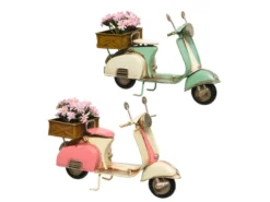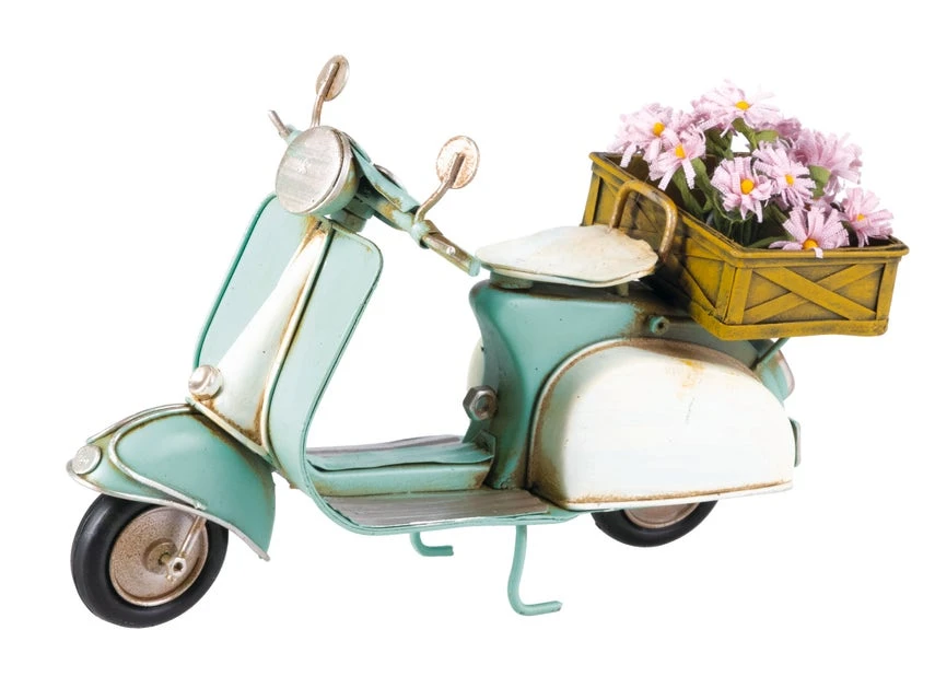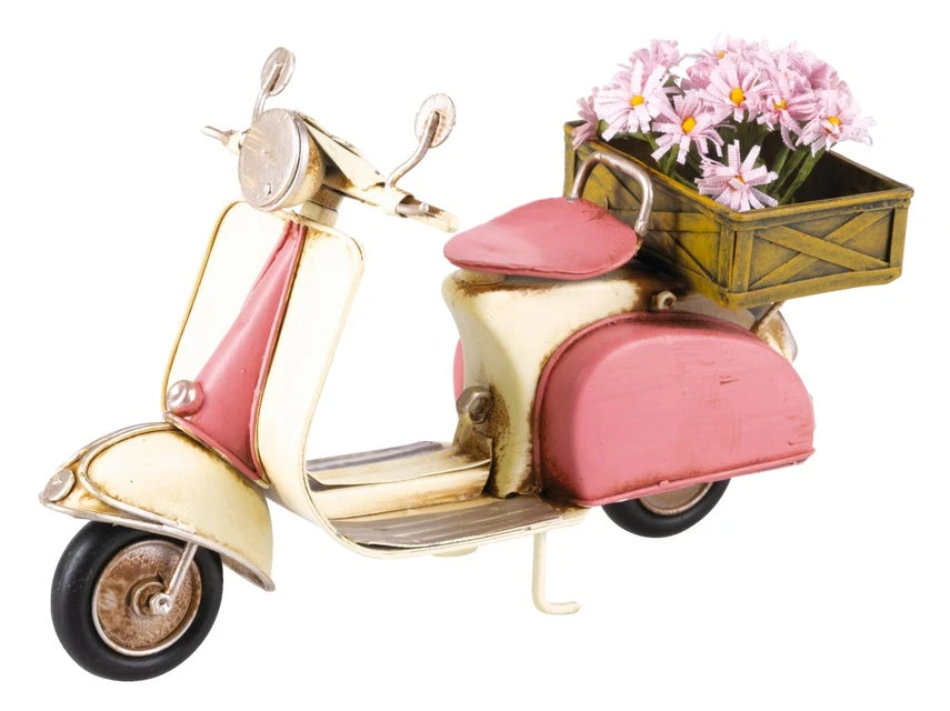 Her mit mediterranem Flair: An bella Italia, Strandurlaub am Mittelmeer und Ausfahrten mit der Vespa im Sommerwind lassen diese zauberhaften Dekoobjekte von Jardini denken. Denn sie orientieren sich ganz am berühmten italienischen Motorroller im täuschend ähnlichen Vintage-Look der 50er-Jahre. Viel typischen Charme versprühen die Pastellfarben und die Blumenkiste auf dem Gepäckträger. Den beschwingten Metallaccessoires gibt es wahlweise in Hellgrün oder Rosa in den Leiner-Filialen.