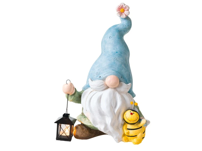 Holen Sie sich diesen entzückenden Zwerg mit Laterne und Biene in Ihre grüne Oase und sorgen Sie damit für einen besonderen Blickfang. Für eine stimmungsvolle Beleuchtung kann man ein Teelicht in die kleine Metalllaterne stellen. Der farbenfrohe, 51 cm hohe Wichtel ist aus robustem Magnesiumoxid hergestellt und bereitet auch als kleines Geschenk Gartenfreunden eine Freude.