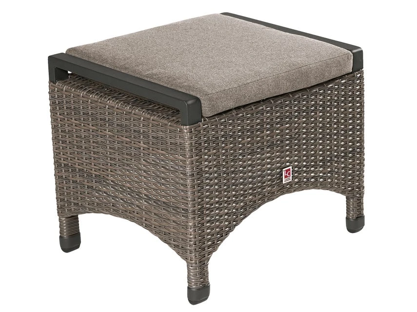 Rasch wird der praktische Gartenhocker Komido ein Lieblingsstück für jeden! Das Aluminiumgestell dieses Hockers ist mit grauem Kunststoffgeflecht ummantelt und er ist zusätzlich mit einem angenehmen Kissen (B 50 x H 5 x T 45 cm) aus Polyester in der Farbe Grau ausgestattet.