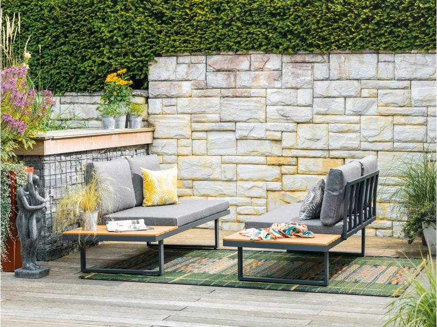 Die Loungegarnitur Sansibar ist eine gemütliche Gartenlounge, die zum Entspannen und gemütlichen Beisammensitzen einlädt. Mit einem modernen Design und komfortablen Auflagen überzeugt sie auf ganzer Linie. Mit dem 2-teiligen Lounge-Set liegen Sie für Terrasse oder Garten voll im Trend.