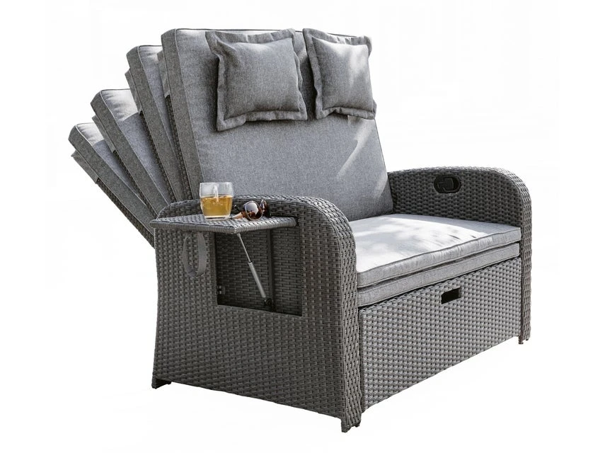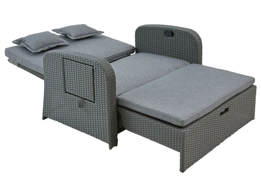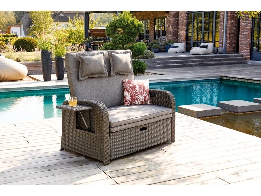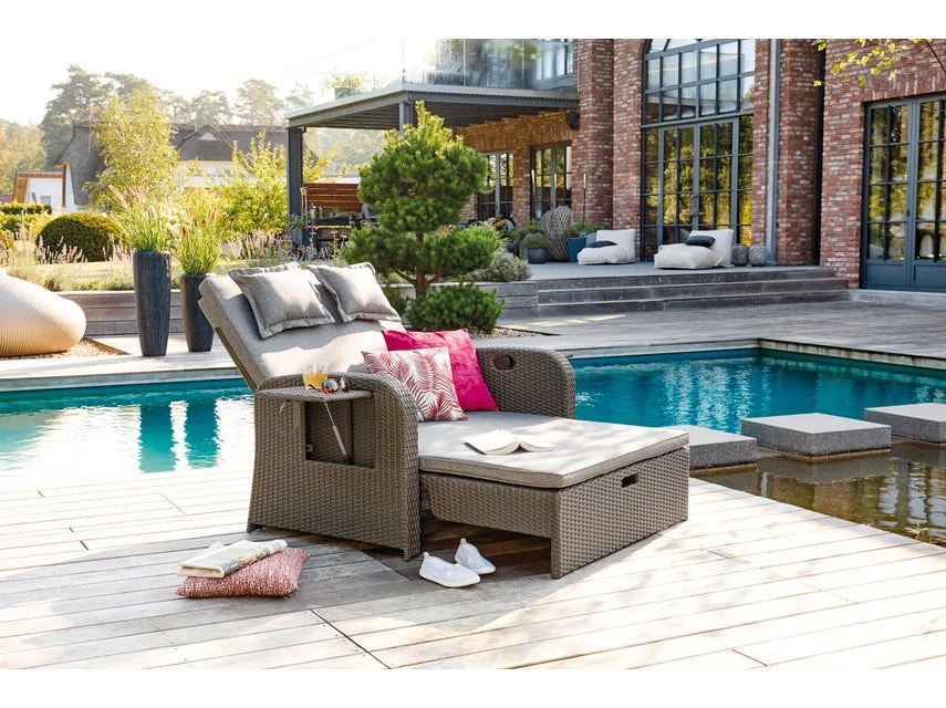 Machen Sie es sich auf dem bequemen Loungesofa Linosa allein oder zu zweit gemütlich und verbringen Sie entspannte Stunden im Garten oder auf Ihrer Terrasse. Das ausziehbare Fußteil und die, bis in Liegeposition, verstellbare Rückenlehne verwandeln das Loungesofa in eine Sonnenliege. Ausgestattet mit Sitz- und Rückenkissen wird dieses Loungemögel schnell zu Ihrem komfortablen Lieblingsplatz.