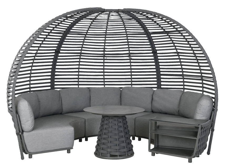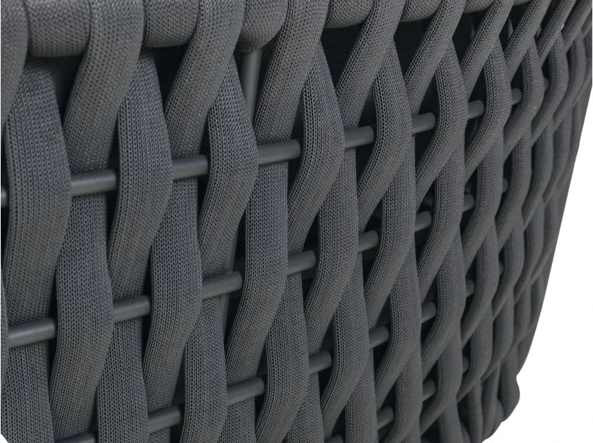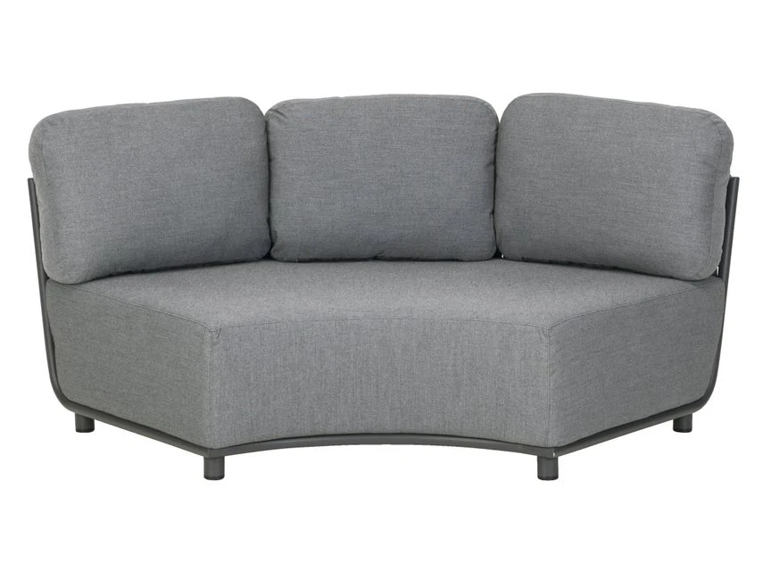 Die formschöne 3er Bank in rund aus einem Aluminiumgestell mit PVC Gurte mit Gummibeschichtung anthrazit ist die ideale Ergänzung zu Ihren Loungemöbeln.