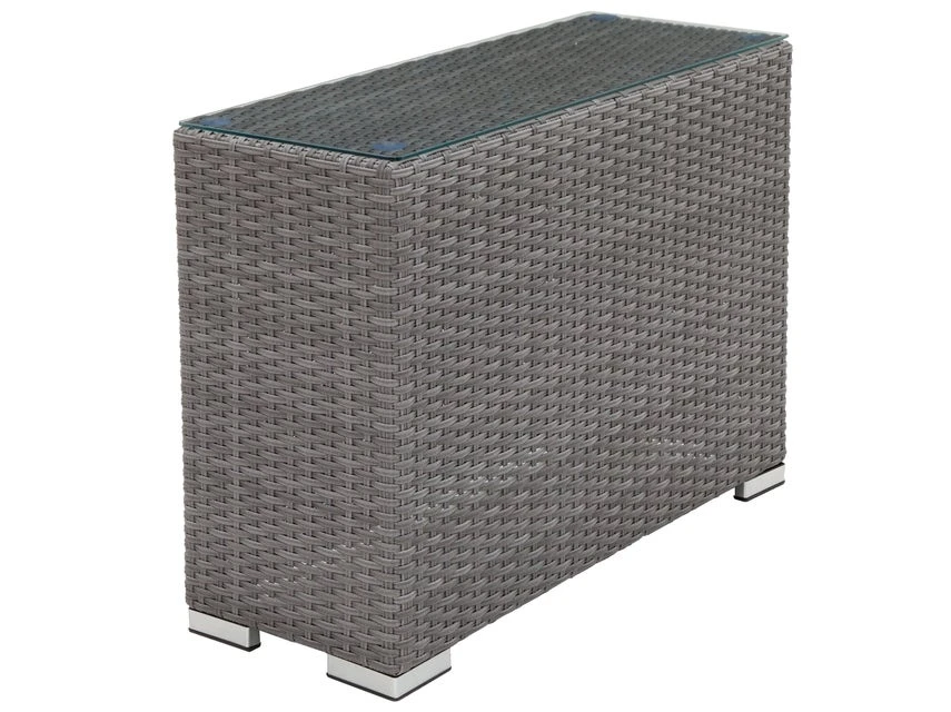 Der praktische Loungetisch Rügen aus einem Aluminiumgestell mit einem Kunststoffgeflecht ummantelt und einer Glasplatte ausgestattet, ist die ideale Erweiterung zu Ihrem Loungeset. Ob alleinstehend oder als bequeme Ablage neben Ihrem Sofa, für dieses Möbel finden Sie bestimmt eine tolle Verwendung.