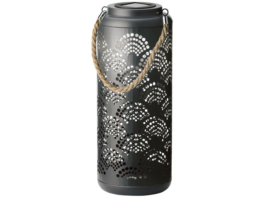 Fernöstliches Flair und eine gemütliche Wohlfühlstimmung bringt die farbige Solarlaterne von Jardini in Ihre Outdoor-Oase. Das kunstvolle durchbrochene Muster erzeugt anheimelnde Licht- und Schatteneffekte und die Farbtemperatur der LEDs lässt sich von ruhigem Warmweiß bis zum klaren Kaltweiß verstellen. Die Leuchte aus lackiertem Eisen besitzt einen tauschbaren Akku mit 8 Stunden Laufzeit. Hübsch und praktisch: die kurze Kordel als Tragegriff. Erhältlich ist sie in Weiß, Grün, Braun oder Anthrazit in den Leiner-Filialen.