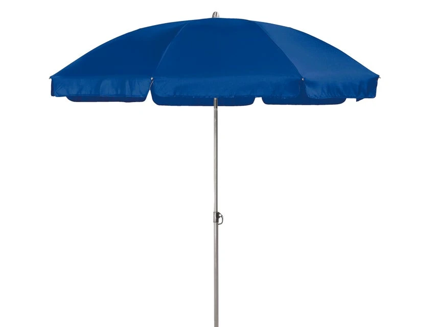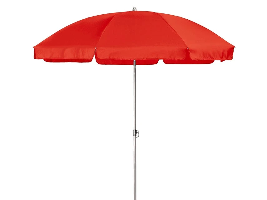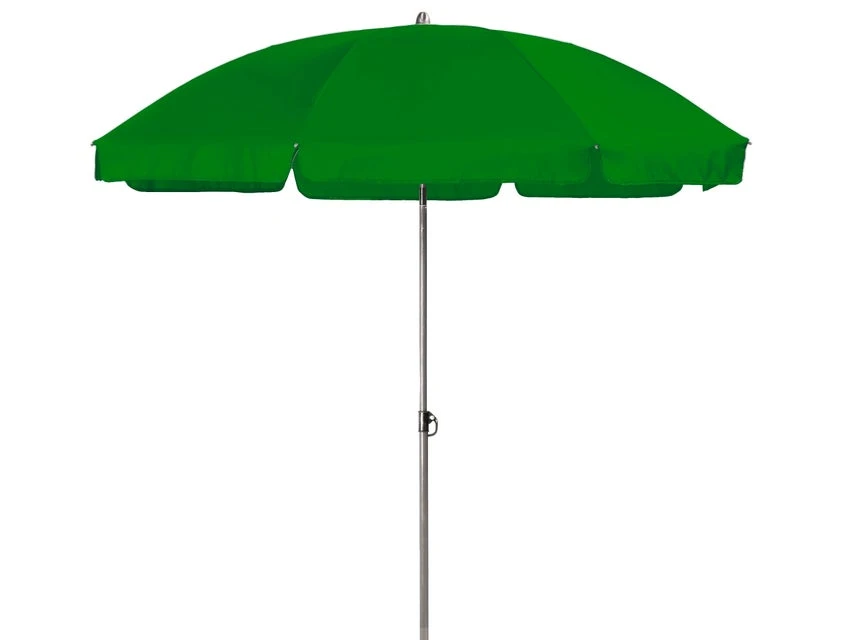 Der Strandschirm ist in den Farben Grün, Rot, Gelb oder Blau in unseren Einrichtungshäusern erhältlich.