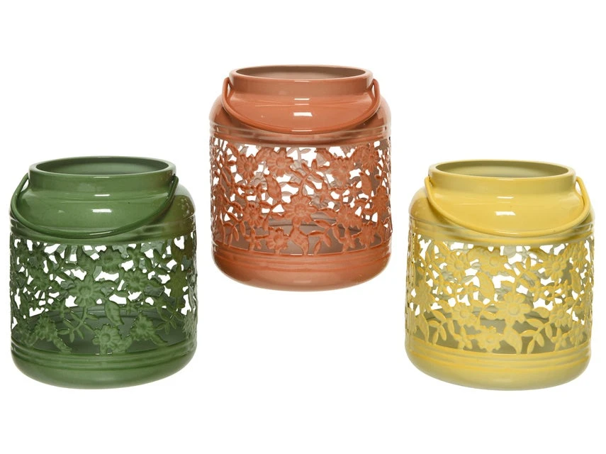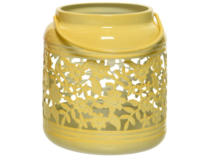 An lauschigen Sommerabenden schafft dieser entzückende Teelichthalter eine behagliche Stimmung. Äußerst reizvoll ist das durchbrochene Blumenrankenmuster, das für ein feines Licht- und Schattenspiel sorgt. Dank dem kleinen Henkel kann man ihn einfach transportieren. Den glänzend lackierten Eisenbehälter ist in drei satten Farbtönen – in Gelb, Grün oder Orange – in den Leiner-Filialen erhältlich.