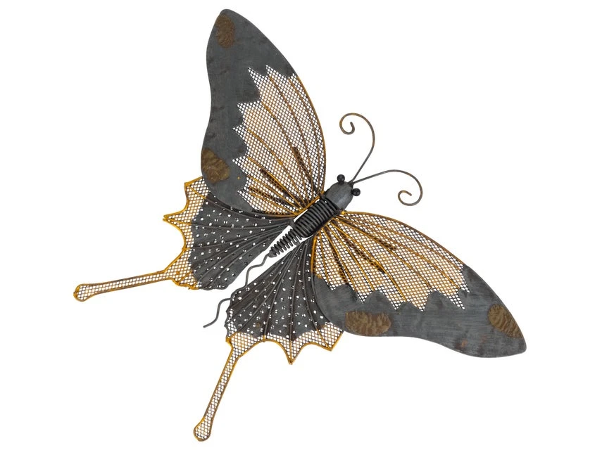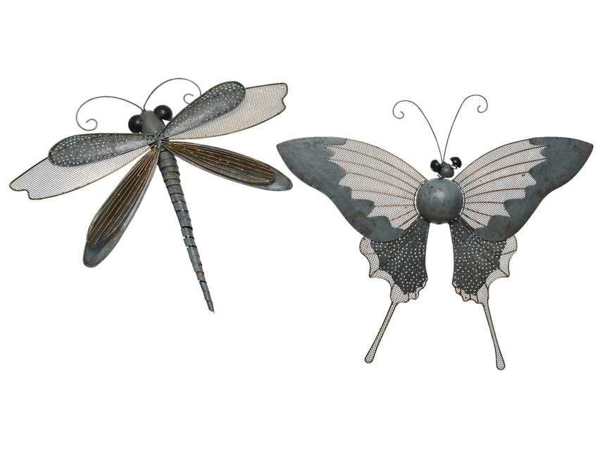 In der Natur bezaubern sie als farbenprächtig schillernde Sommerboten. Und als Dekomotiv wird der in zwei Versionen erhältliche Wandhänger Insekt aus grauem und braunen Eisen zum absoluten Hingucker an der Wand. Ob im Innen- oder Außenbereich, ob als Libelle oder Schmetterling, die aufwendigen, dezent farbigen Designs ziehen alle Blicke auf sich.