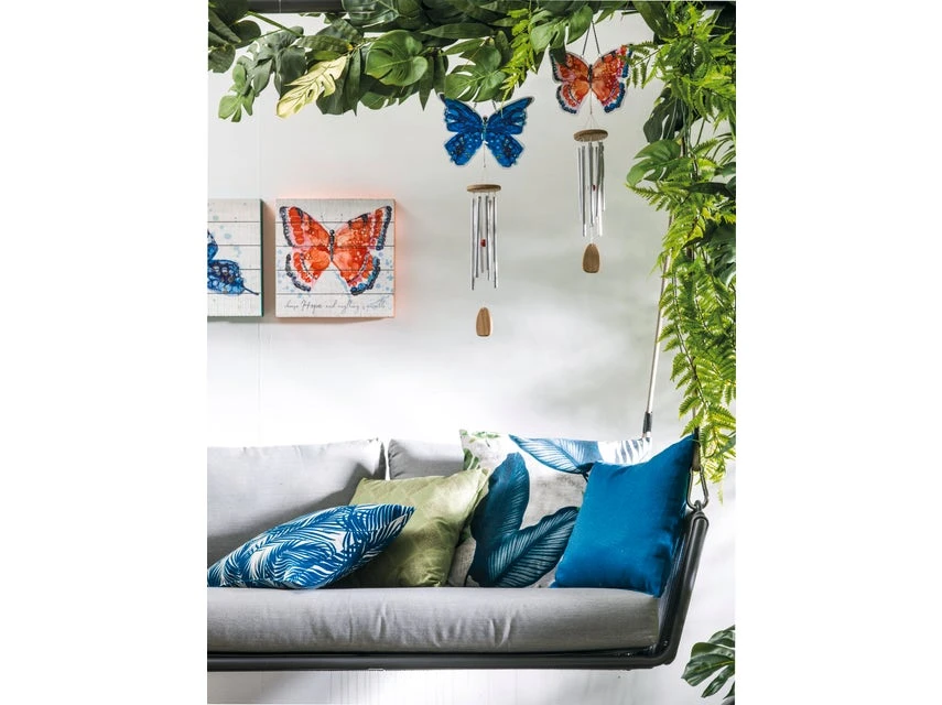 Wussten Sie, daß Windspiele in Teilen Asiens als Glücksbringer gelten und auch im Feng Shui eingesetzt werden. Mit diesem Modell im Schmetterlings-Design setzen Sie auf jeden Fall einen tollen Akzent auf Ihrer Terrasse oder dem Balkon. Lauschen Sie den vom Wind erzeugten Klängen und lassen Sie dabei die Seele baumeln.
