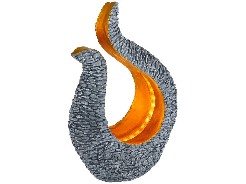 Eine organisch geschwungene Steinskulptur, die im Inneren goldfarben leuchtet, stellt die graue Solarleuchte dar. Mit ihrer strukturierten Oberfläche wird sie zum ausgefallenen Dekoobjekt für grüne Oasen. Insgesamt 28 warmweiße LEDs schaffen einen einmaligen Lichteffekt. Mit Schalter, Akku und der Schutzart IP44 ist die robuste Kunststoffleuchte von Globo für draußen bestens geeignet.