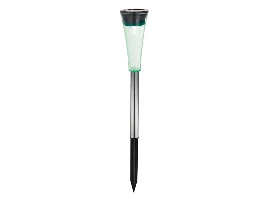 Bunte Abwechslung bringt das fünfteilige Solarleuchtenset von Globo in den Outdoorbereich. Dank eines RGB-Farbwechslers erstrahlen die LED-Solarspieße in farbenfrohem Licht, damit erhellen sie nicht nur ihre Umgebung und Gartenwege, sondern schaffen zugleich eine stimmungsvolle Atmosphäre. Da sie aus robustem Edelstahl und Kunststoff hergestellt und spritzwassergeschützt sind, sind sie für den Außeneinsatz perfekt gerüstet. Aufgeladen beträgt die Leuchtdauer etwa bis zu acht Stunden.