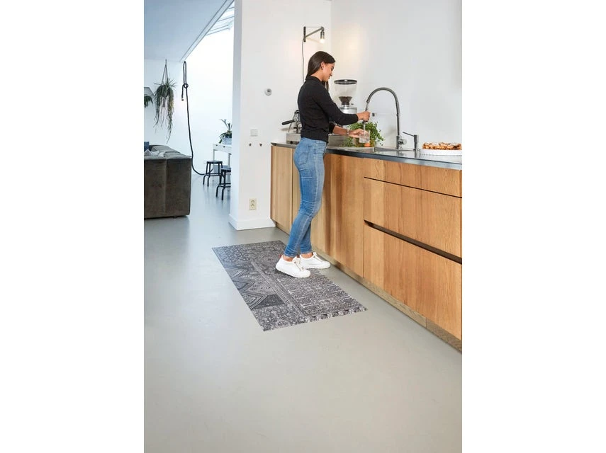 Mit diesem robusten und pflegeleichten Teppich aus Vinyl werden Sie bestimmt lange Freude haben.