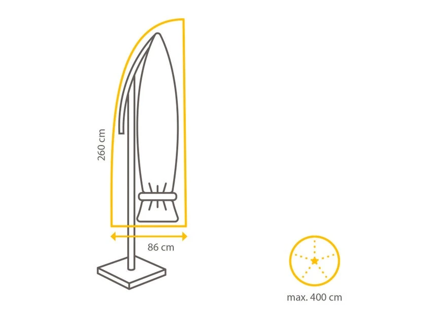 Diese Schutzhülle für Sonnenschirme B60/H260 cm bestehet aus hochwertigem Polypropylen Multifilament. Das Gewebe ist wasserdicht, UV-beständig und farbbeständig.